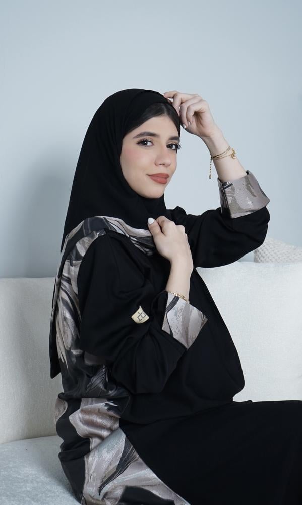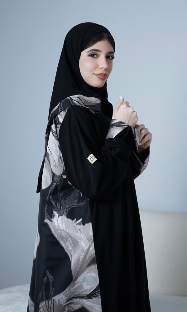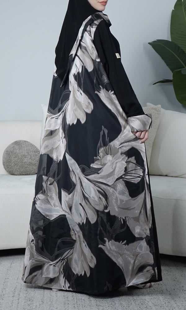 تصميم انيق بإستخدام افخم انواع الجاكار في كلا من الظهر والكم والطرحة.